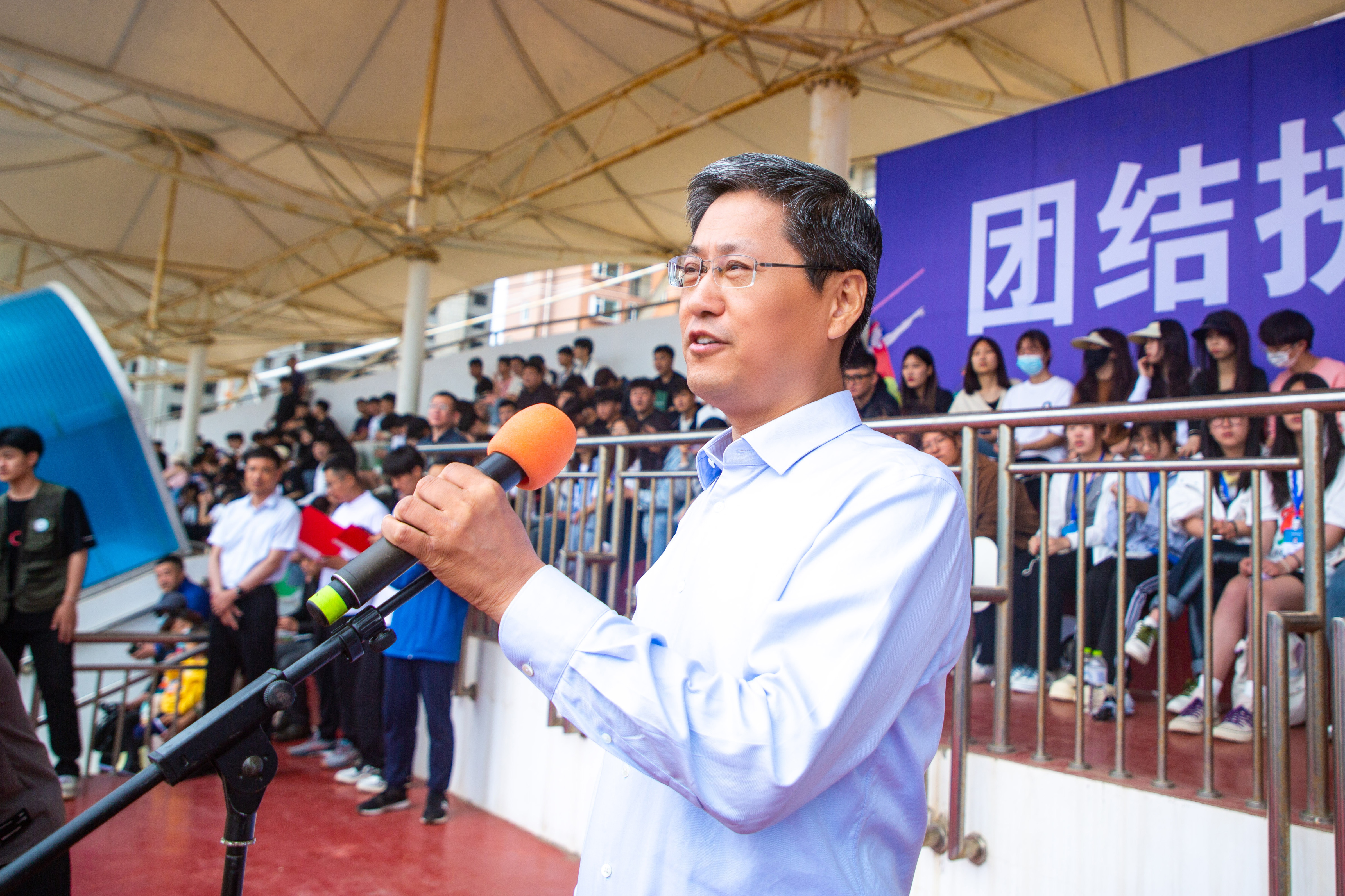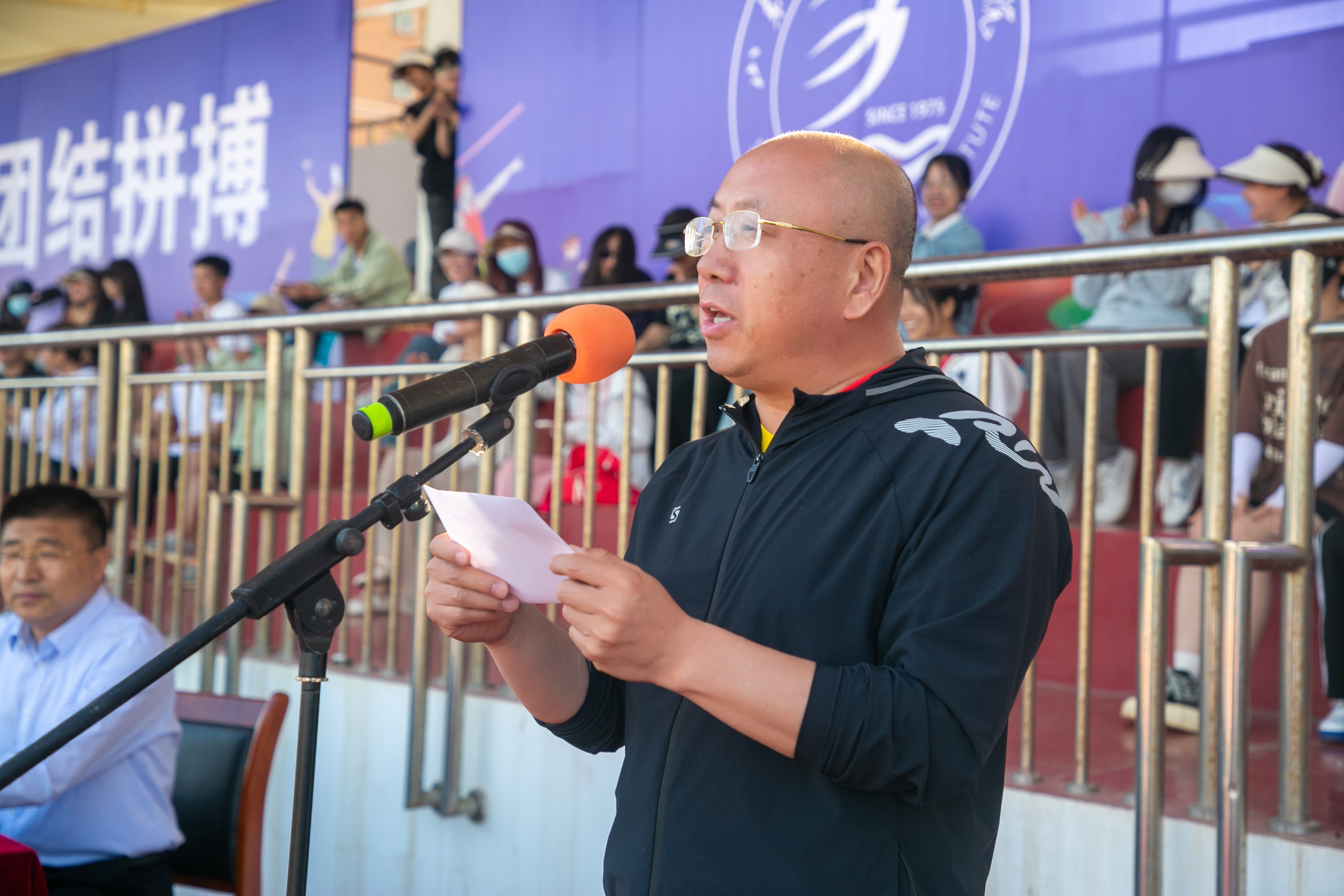 校长王发明发表了激情洋溢的开幕词。他指出,三年的疫情,让我们真正认识到健康体魄的珍贵,不仅事关个人进步、事业发展,更关乎国家与民族的未来,也让我们深刻领会了伟大领袖毛泽东主席经典题词“发展体育运动,增强人民体质”的现实意义。这次运动会,是疫情过后我校师生第一次运动大聚会,也是全校上下扎实开展学习贯彻习近平新时代中国特色社会主义思想主题教育、奋发努力争创“双高计划”院校、推动高质量发展的关键时候召开的一次盛会。他号召全体参赛运动员要发扬“更快、更高、更强、更团结”的奥林匹克精神,赛出竞技水平,赛出道德风尚,赛出个性风采。