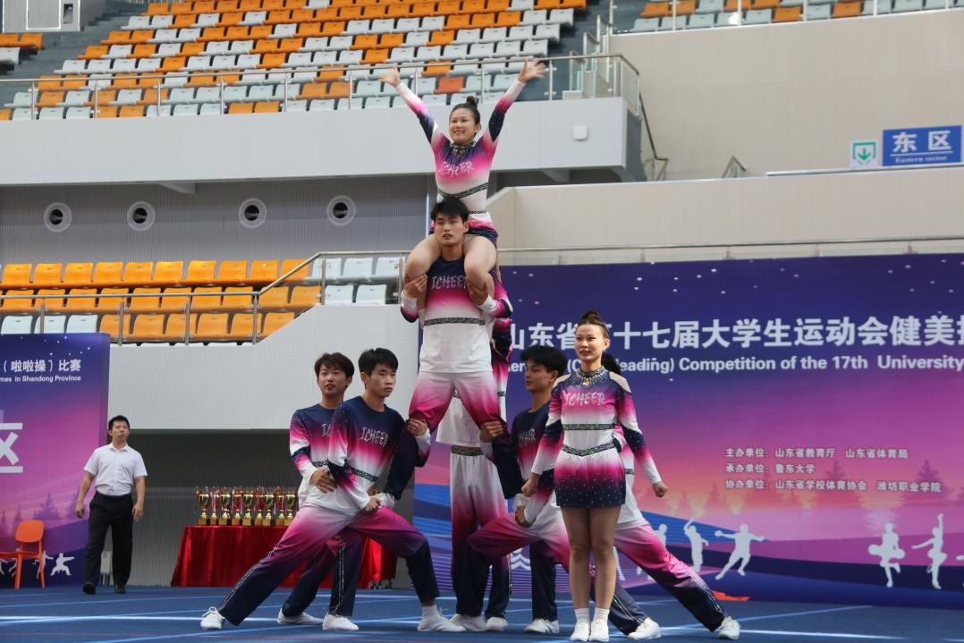 10月2日,山东省第十七届大学生运动会健美操(啦啦操)比赛在潍坊职业学院开幕。本次比赛由山东省教育厅、山东省体育局主办,为期4天,设有10个比赛项目,共有来自全省各高校的72支代表队、近800名运动员齐聚潍坊,展现青春活力与拼搏精神。我校参赛队伍在比赛中获得集体技巧啦啦操第二名,集体街舞啦啦操第四名,团体总分第七的好成绩。